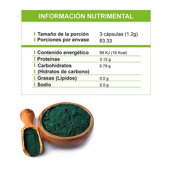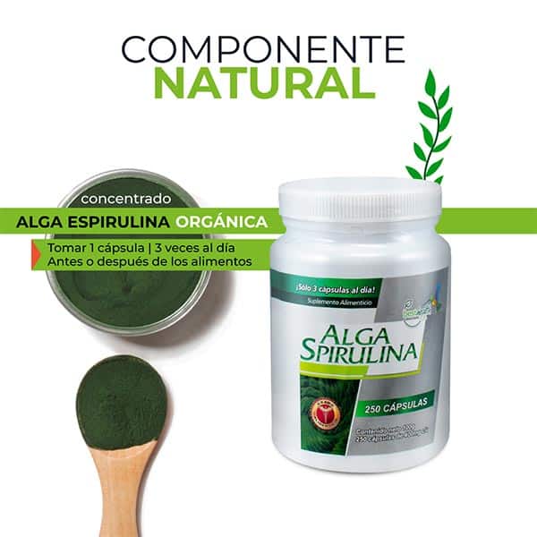 Tomar 1 cápsula de alga espirulina orgánica 3 veces al día, antes o después de los alimentos